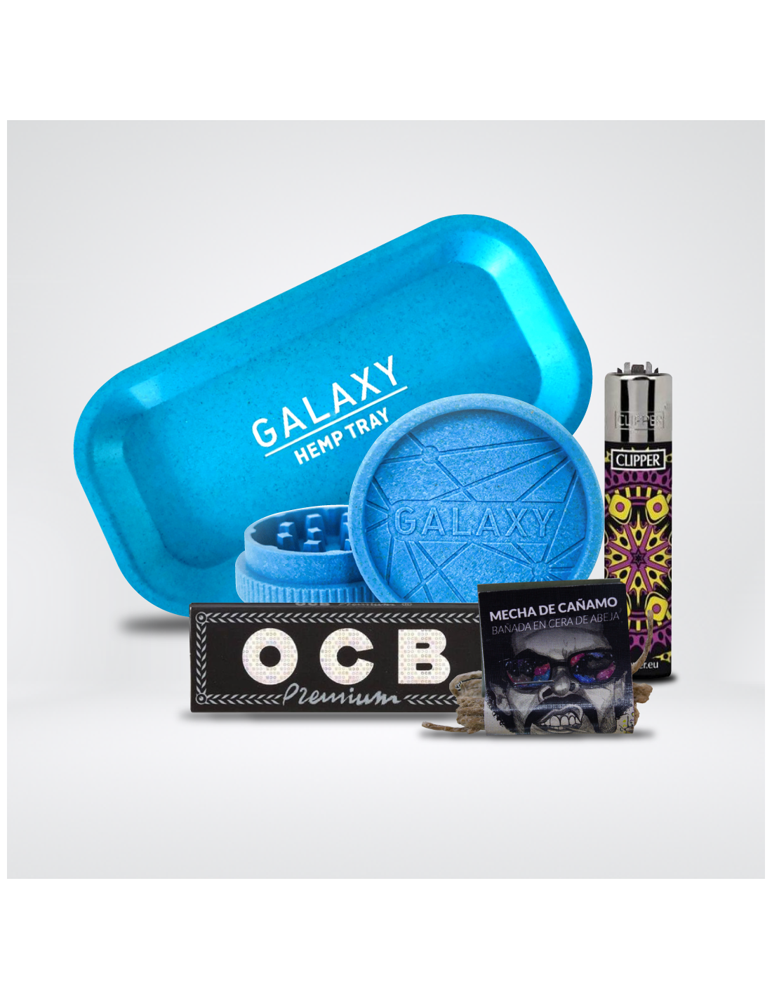 Descubre la combinación perfecta de estilo, funcionalidad y calidad con nuestro pack del Galaxy EcoHemp. En él encontrará al moledor EcoHemp de Galaxy realizado con materiales recicables, la práctica bandeja de enrolar y los accesorios premium como el papel OCB el encendedor Clipper. Completa tu experiencia con la mecha de cáñamo Astro, y sumérgete en un mundo de sofisticación y placer natural.
