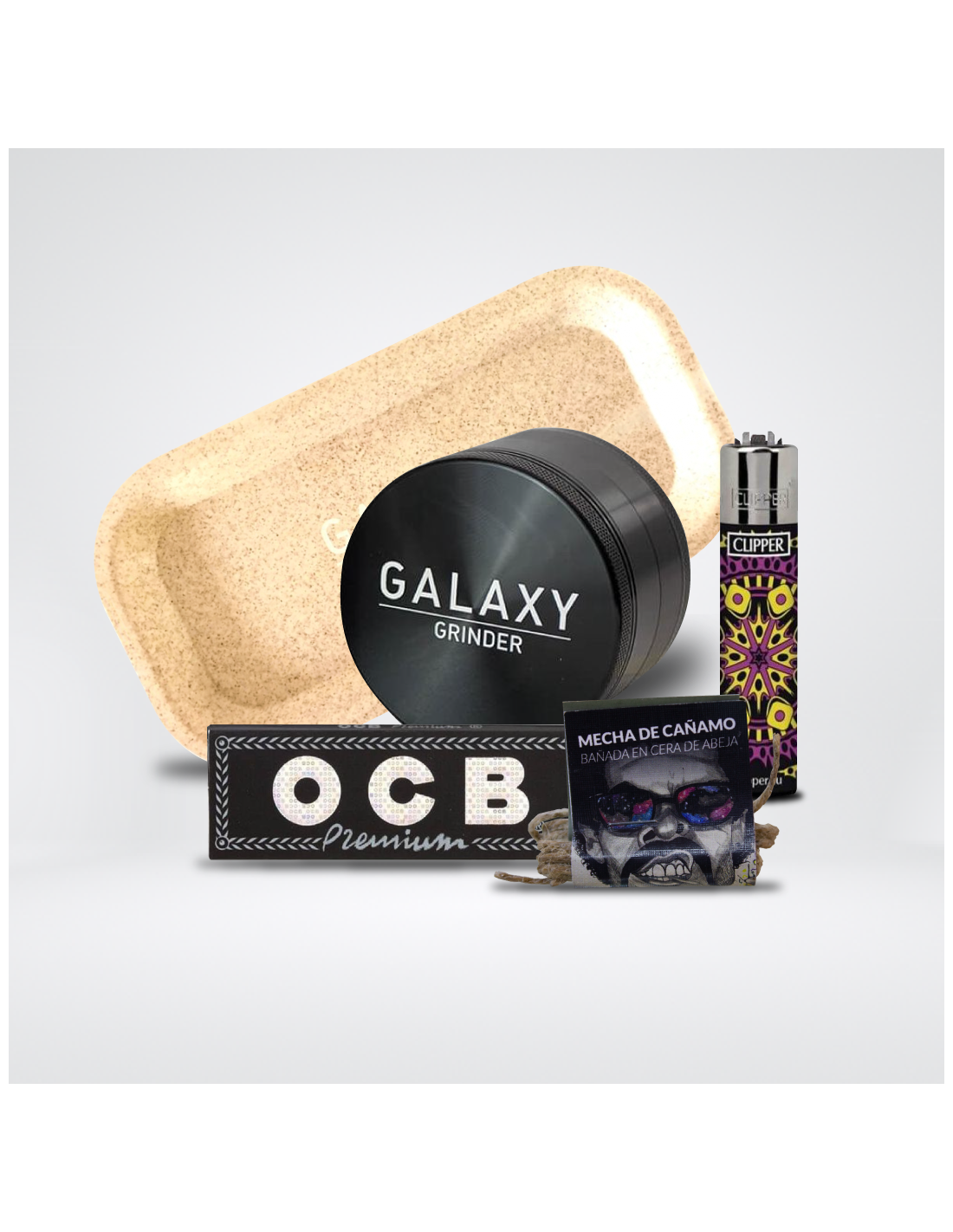 Eleva tu ritual de cannabis con este exclusivo pack, diseñado meticulosamente para los aficionados que valoran la calidad y la comodidad. Este conjunto integral transforma cada sesión en una experiencia sofisticada y placentera, destacando por su funcionalidad y estilo. El corazón del pack es el Galaxy Grinder de 55 mm, una obra maestra en diferentes colores que garantiza una molida perfecta de tus cogollos, preservando su frescura y potenciando su aroma. Acompañándolo, la bandeja de enrolado de hemp Galaxy que no solo es práctica sino también un accesorio distintivo que refleja tu pasión por el universo del cannabis.