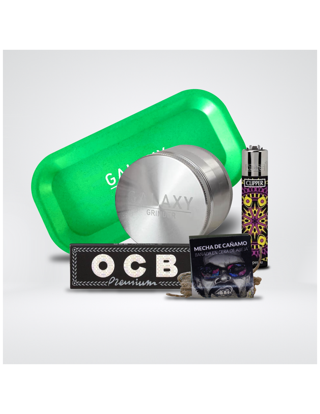 Eleva tu ritual de cannabis con este exclusivo pack, diseñado meticulosamente para los aficionados que valoran la calidad y la comodidad. Este conjunto integral transforma cada sesión en una experiencia sofisticada y placentera, destacando por su funcionalidad y estilo. El corazón del pack es el Galaxy Grinder de 55 mm, una obra maestra en diferentes colores que garantiza una molida perfecta de tus cogollos, preservando su frescura y potenciando su aroma. Acompañándolo, la bandeja de enrolado de hemp Galaxy que no solo es práctica sino también un accesorio distintivo que refleja tu pasión por el universo del cannabis.