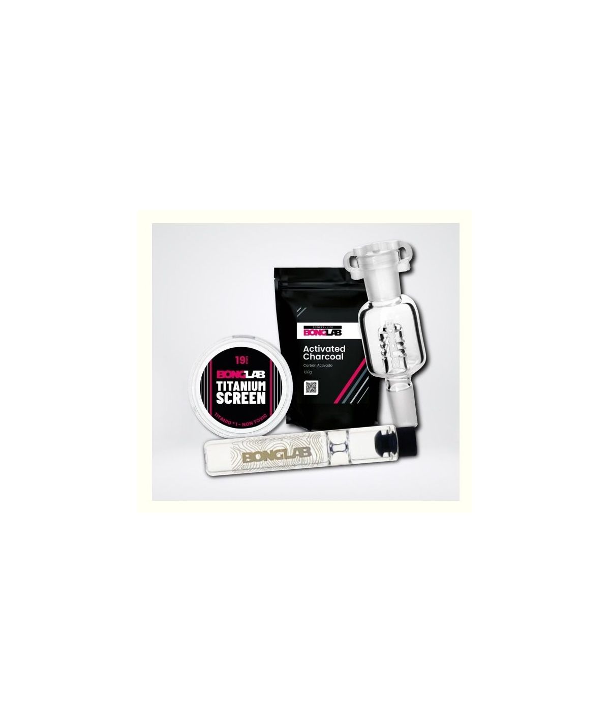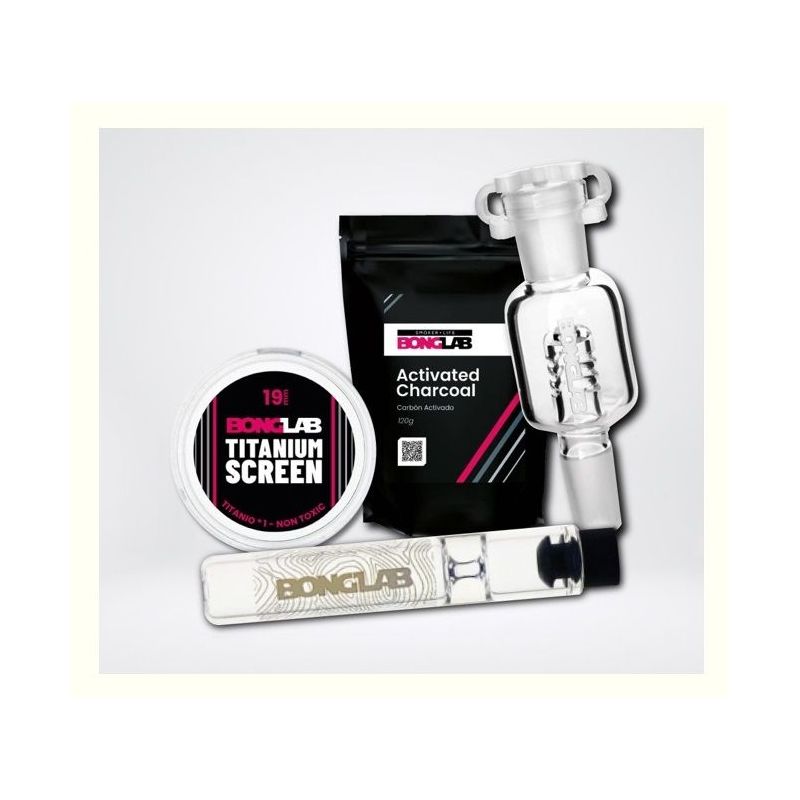 Además, el pack se complementa con el PURIFY CARBON FILTER SYSTEM en 14mm o 18mm, un sistema de filtración con carbón activado para una experiencia más pura y suave, sin perder el auténtico sabor. Completa tu pack con el set de rejillas Titanium Screen Grado 1, disponibles en 15mm o 19mm, para garantizar una calada limpia y libre de residuos. Este pack es el regalo definitivo para cualquier entusiasta del cannabis que valora la calidad superior y el estilo inconfundible de Bonglab.