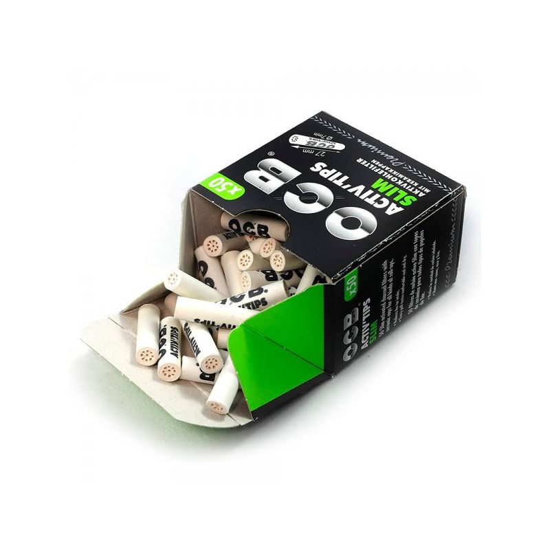Los Activ Tips de OCB, con 7mm de diámetro, carbón activado y tapas de cerámica, ofrecen una experiencia de fumada superior, suavizando y enfriando el humo. Disponibles en cajas de 50 unidades, estos filtros avanzados son compatibles con varios tipos de papel, mejorando notablemente la calidad de cada cigarrillo armado.
