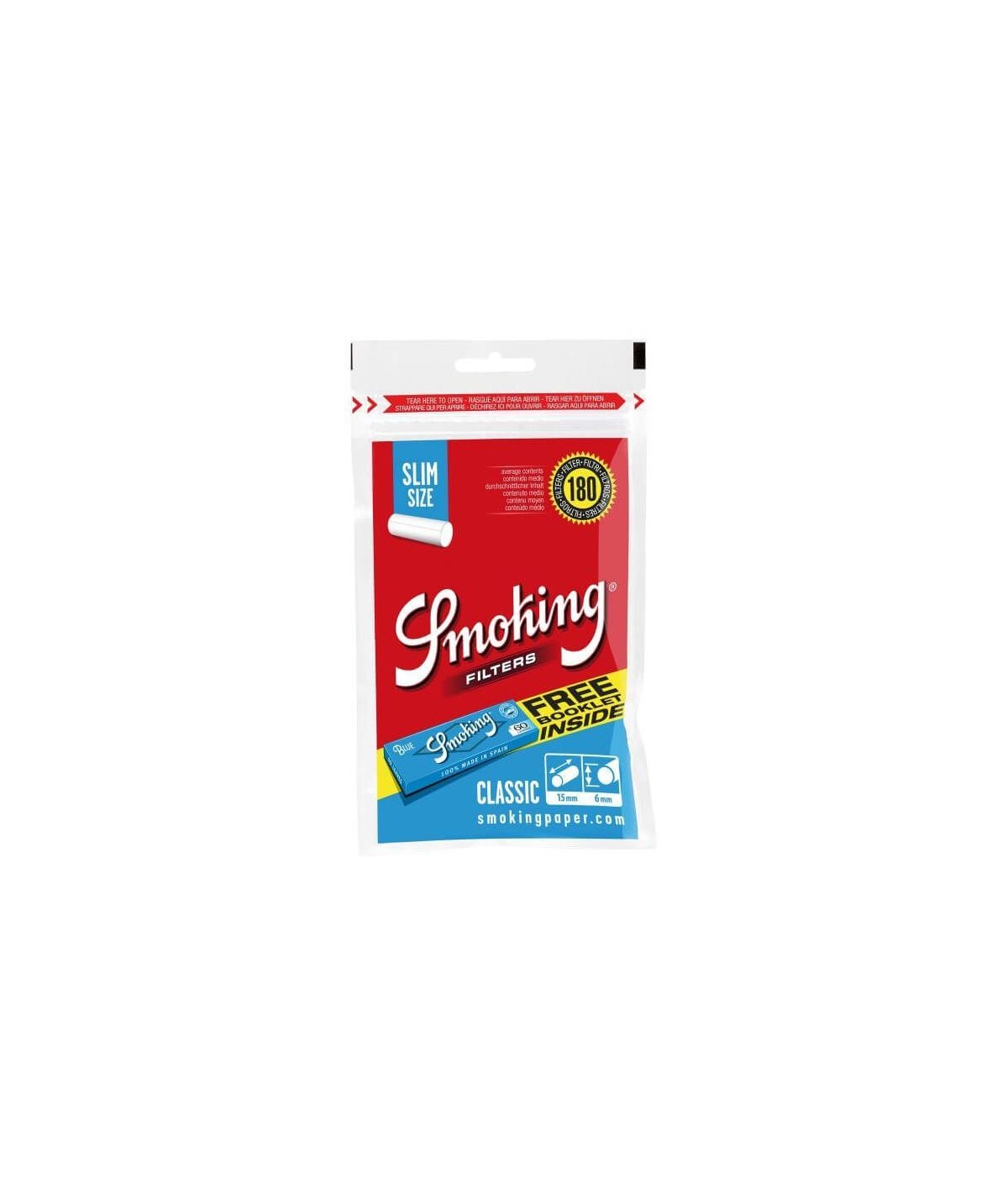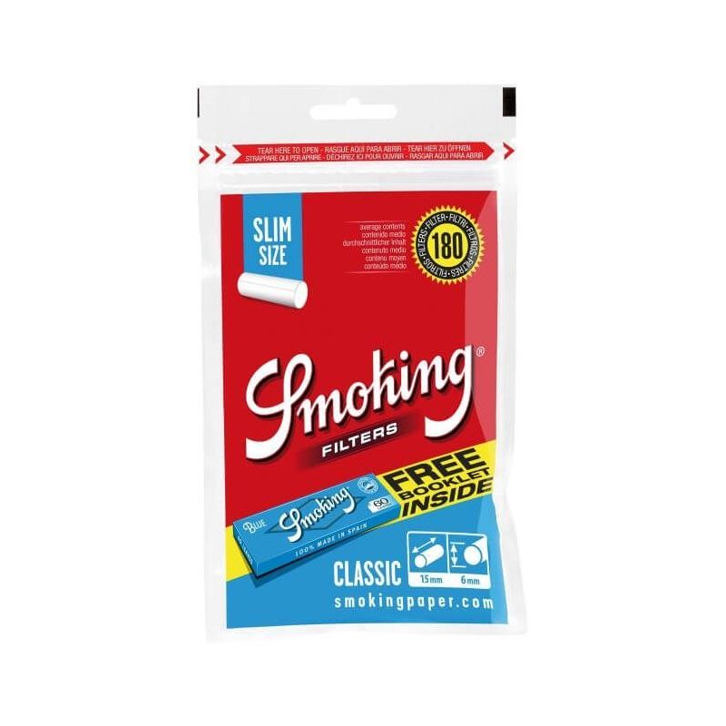 Explora la comodidad y eficiencia con los Filtros Slim Size Classic Blue Regular 180 de Smoking, diseñados específicamente para los amantes de los cigarrillos más finos. Con una longitud de 15 mm y un diámetro de 6 mm, estos filtros son el tamaño ideal para aquellos que buscan precisión y practicidad en su experiencia de fumar. Cada bolsa incluye 180 unidades, asegurando que siempre tendrás suficientes filtros a mano para tus necesidades diarias.