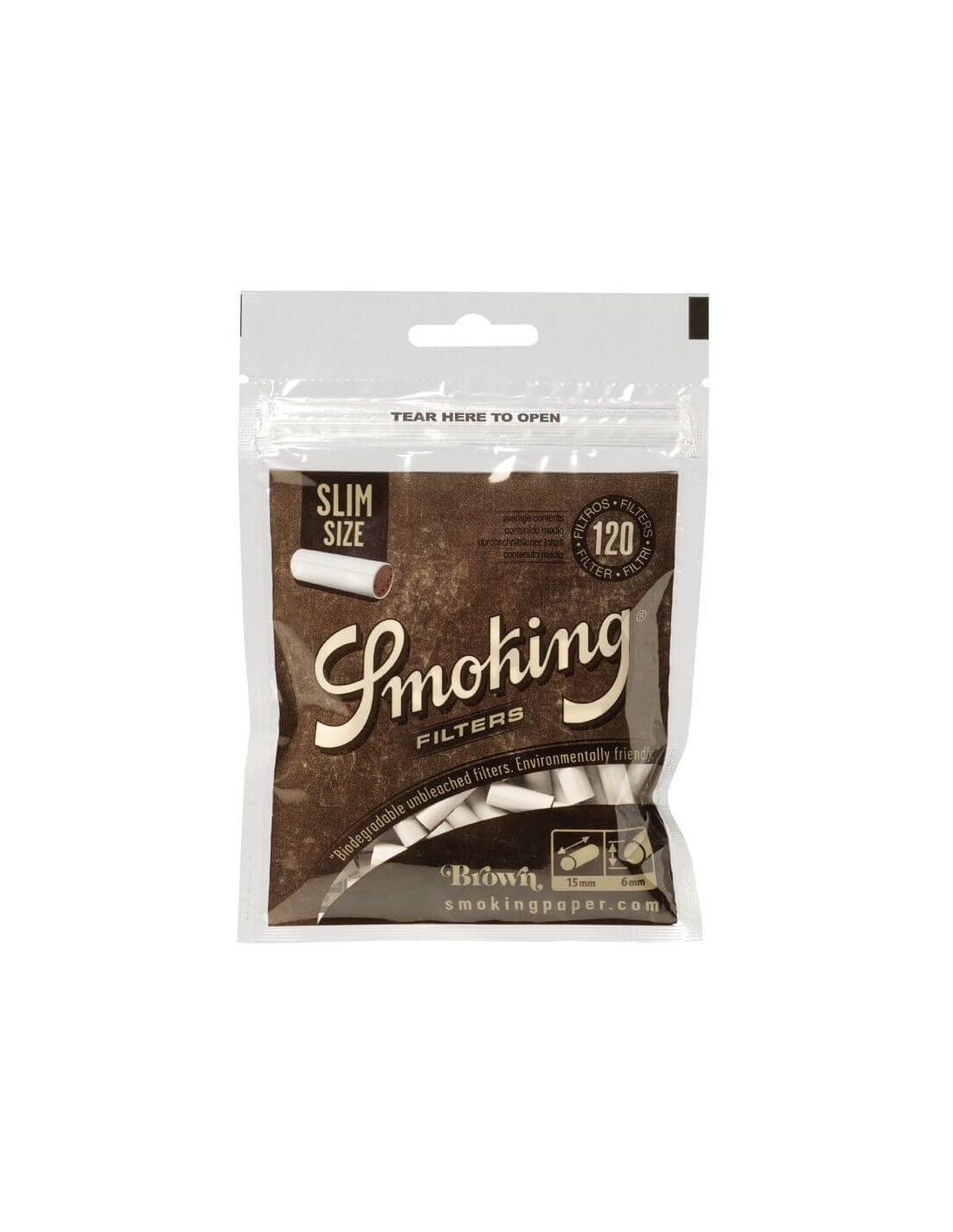 -Optimiza tu experiencia de fumar con los innovadores Filtros Slim Brown de Smoking, diseñados especialmente para quienes prefieren cigarrillos más delgados y naturales. Estos filtros de 6 mm de diámetro y 15 mm de longitud son perfectos para lograr rolados más finos y elegantes. Fabricados sin cloro y sin blanquear, garantizan una opción 100% biodegradable, alineada con un estilo de vida respetuoso con el medio ambiente.
