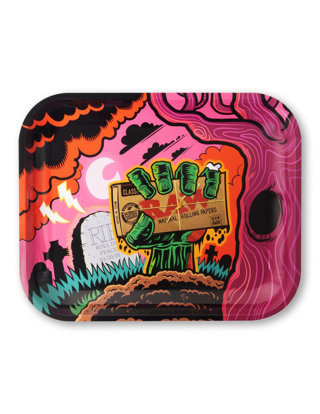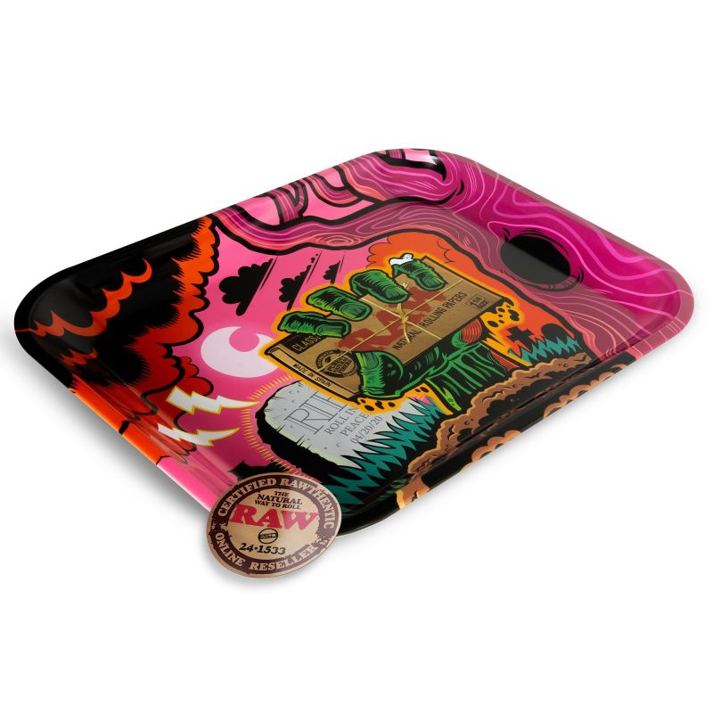 La icónica bandeja de enrolado RAW es imprescindible en tu pack fumador, sirve para contener toda tu hierba al enrolar y que no se pierda nada! el tamaño de esta bandeja es de 33x27.5cm.