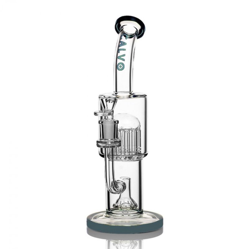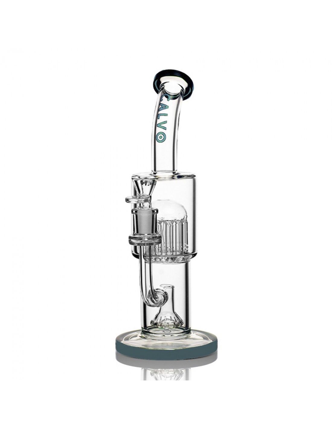El Rig con Percolador de Árbol Teal de Calvo Glass es una pieza magistral que combina diseño innovador y funcionalidad excepcional para los amantes de la hierba seca. Este bong se distingue por su impresionante percolador en forma de árbol, que, junto con un segundo percolador de tipo shower, crea una experiencia de filtración superior, caracterizada por un estallido vibrante de burbujas que asegura una fumada suave y refrescante.