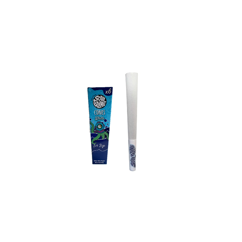 Conos 1 1/4 Blancos Unidad - Soulblime es un cono pre-enrolado de papel blanco que ofrece una quema uniforme y una experiencia de fumar sin complicaciones. Con su tamaño de 1 1/4, este cono es fácil de usar y transportar, ideal para quienes buscan calidad y simplicidad en cada sesión.