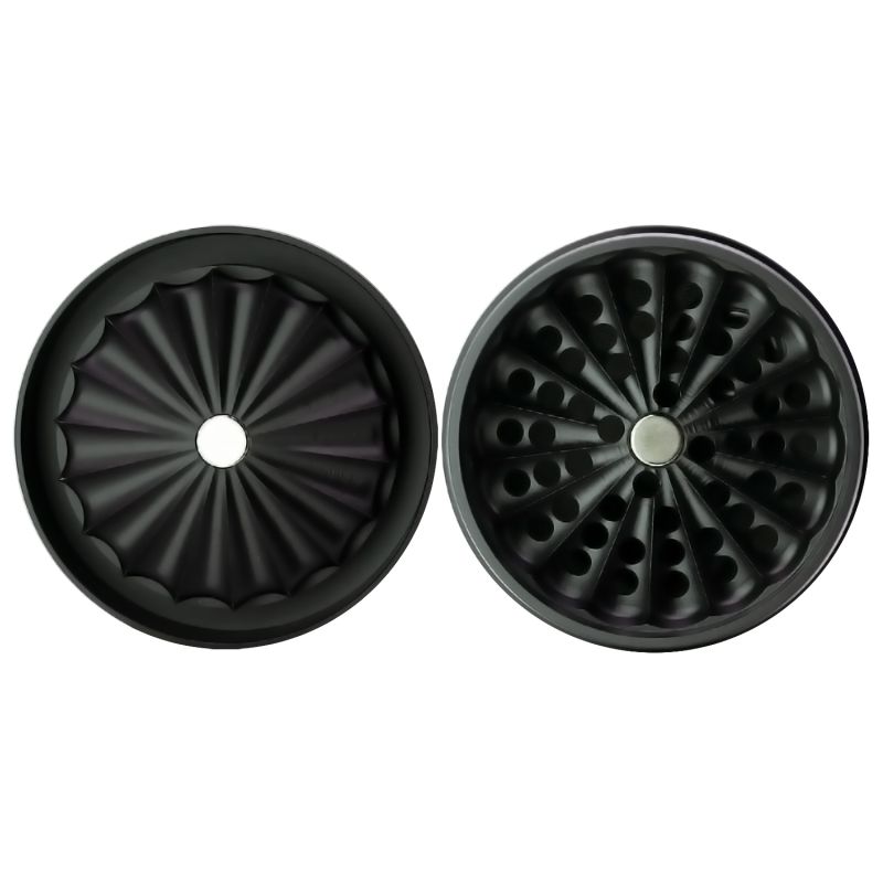El Pro Model Grinder se diseñó para adaptarse sin problemas a cualquier proceso de molida, con una altura de 46mm y un diámetro de 63mm, y una forma redondeada que mejora el proceso de triturado. Su innovadora estructura sin dientes permite obtener un resultado más esponjoso y libre de tallos, al tiempo que garantiza una durabilidad excepcional, incluso bajo uso intensivo.