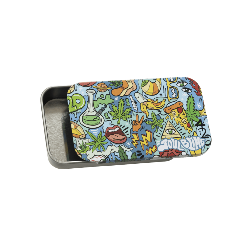 Eleva tu organización y transporte de accesorios con los Contenedores con Tapa Deslizable de Soulblime, diseñados meticulosamente para el consumidor de cannabis consciente y activo. Estos contenedores metálicos no solo ofrecen una solución robusta y duradera para tus necesidades de almacenamiento, sino que también protegen su contenido de elementos como la luz solar y la humedad, asegurando que tus productos se mantengan en óptimas condiciones.