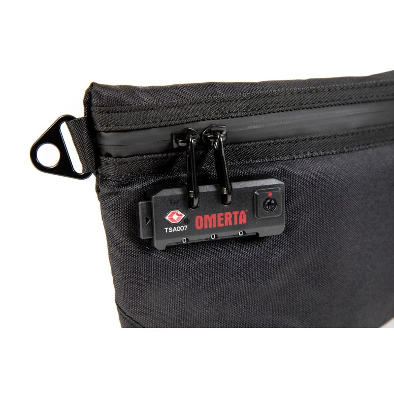 -El Collector Black Smell Proof 22 cm de DIME BAGS es un bolso compacto y resistente, diseñado para bloquear completamente olores gracias a su tecnología de filtrado de carbono activado. Su diseño incluye un candado TSA de combinación numérica, que ofrece seguridad adicional y está aprobado para viajes.