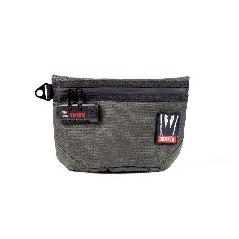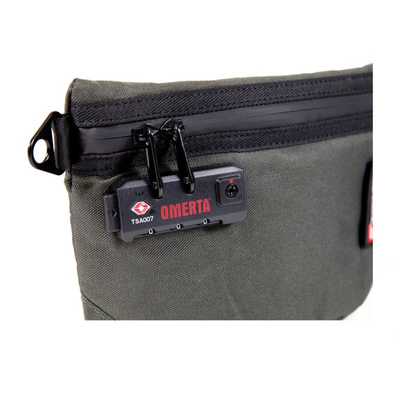 Bolso smell proof de 30 cm con filtro de carbono y candado TSA, diseñado en color verde para transportar con seguridad y estilo.