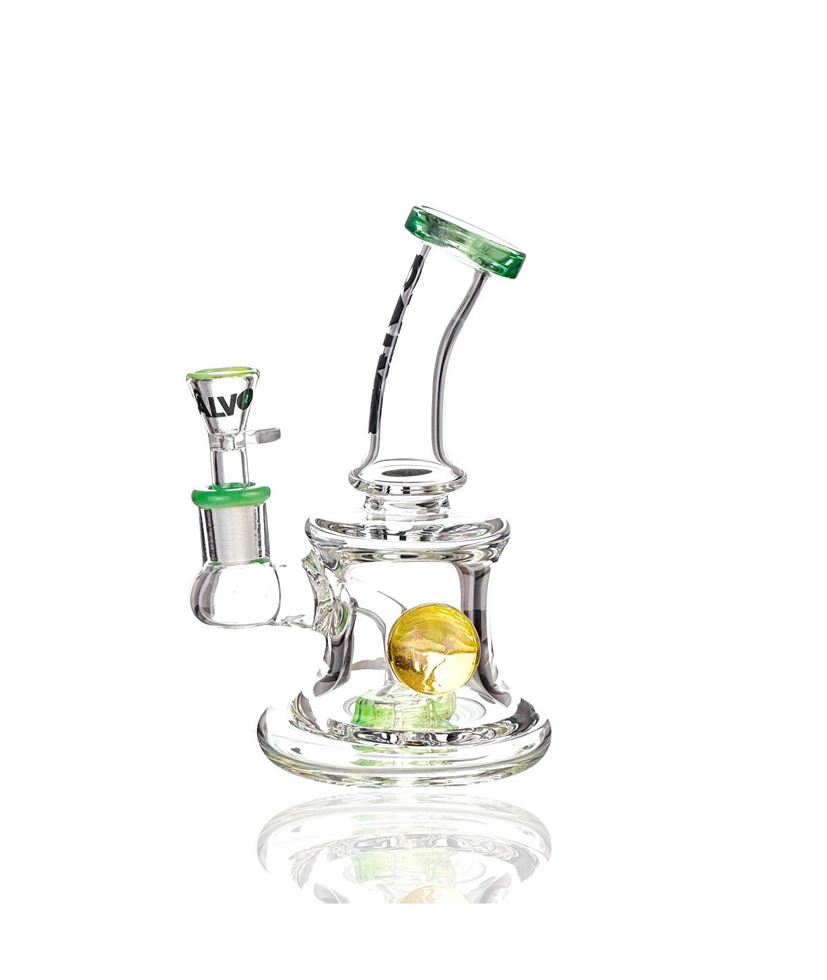 Inspirado en el universo de Dragon Ball Z, el Rig Dragon Ball Z Green de Calvo Glass rinde homenaje a las míticas esferas del dragón. Esta pieza de pyrex borosilicato americano hecho a mano destaca por su esfera central decorativa en verde translúcido, evocando el poder de Shenlong y la estética icónica del anime.