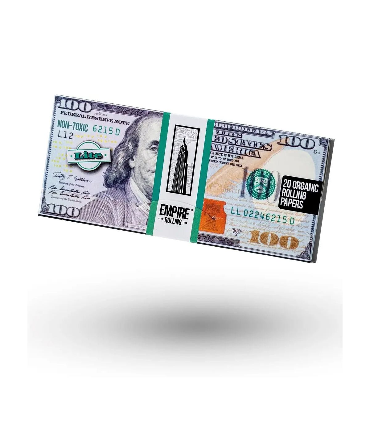 Pack de 20 papelillos king size slim con diseño de billete de 100 dólares. Papel ultrafino y de combustión lenta. Ideal para sesiones con estilo y buen gusto.