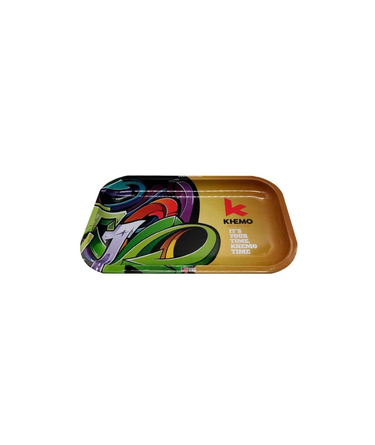 La Bandeja Metálica Dorada de Khemo es el accesorio perfecto para quienes buscan combinar practicidad y diseño en sus sesiones. Fabricada en metal resistente, esta bandeja ofrece una base firme y duradera para enrollar, picar y organizar todo lo necesario para fumar.