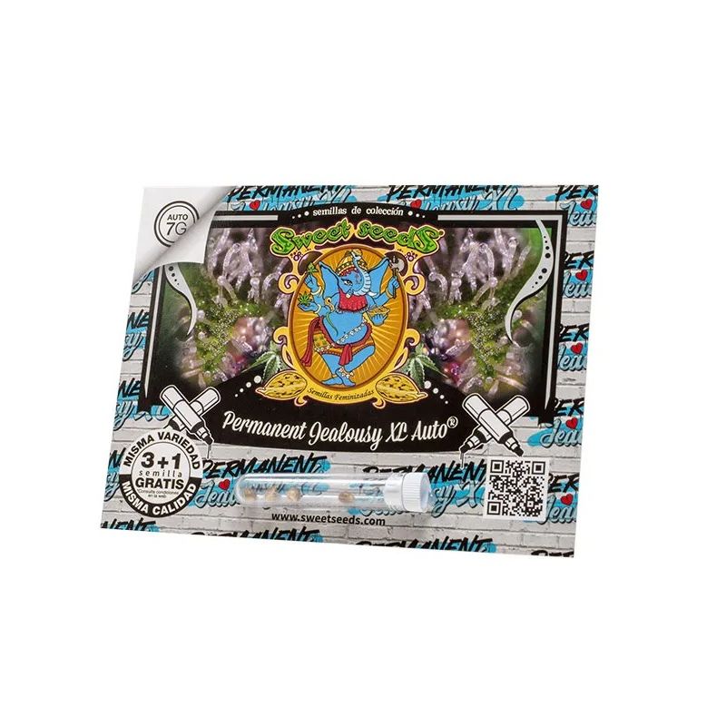 Permanent Jealousy XL Auto® 3+1 de Sweet Seeds es una semilla feminizada autofloreciente de séptima generación, desarrollada a partir del cruce entre un clon élite Super Strong de Permanent Marker y la potente Jealousy Z XL Auto®. Esta variedad de talla alta combina potencia, perfil aromático complejo y una estructura compacta y ramificada, ideal para extracciones y cultivadores exigentes. Con una predominancia índica del 63,2 %, esta genética ofrece cogollos densos y resinosos, ricos en terpenos, con aromas intensos que mezclan notas cítricas, mentoladas, leñosas y un toque picante de Sour Diesel.