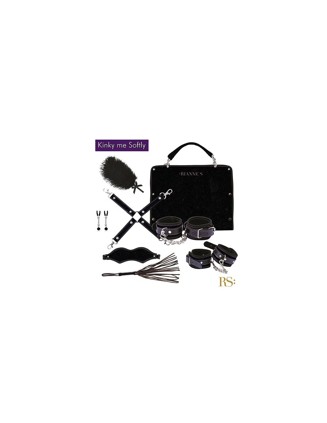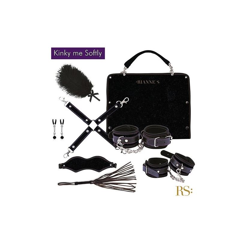 ¡Dale un giro elegante y travieso a tus juegos en pareja con el sofisticado set BDSM de RIANNE S! Este hermoso bolso contiene todo lo que necesitas para explorar nuevas sensaciones y despertar tus deseos más íntimos, incluyendo esposas, tobilleras, una venda, plumas de placer, joyas para pezones, un látigo y una amarra cruzada. Perfecto para quienes buscan iniciarse en el mundo BDSM con estilo y sensualidad.