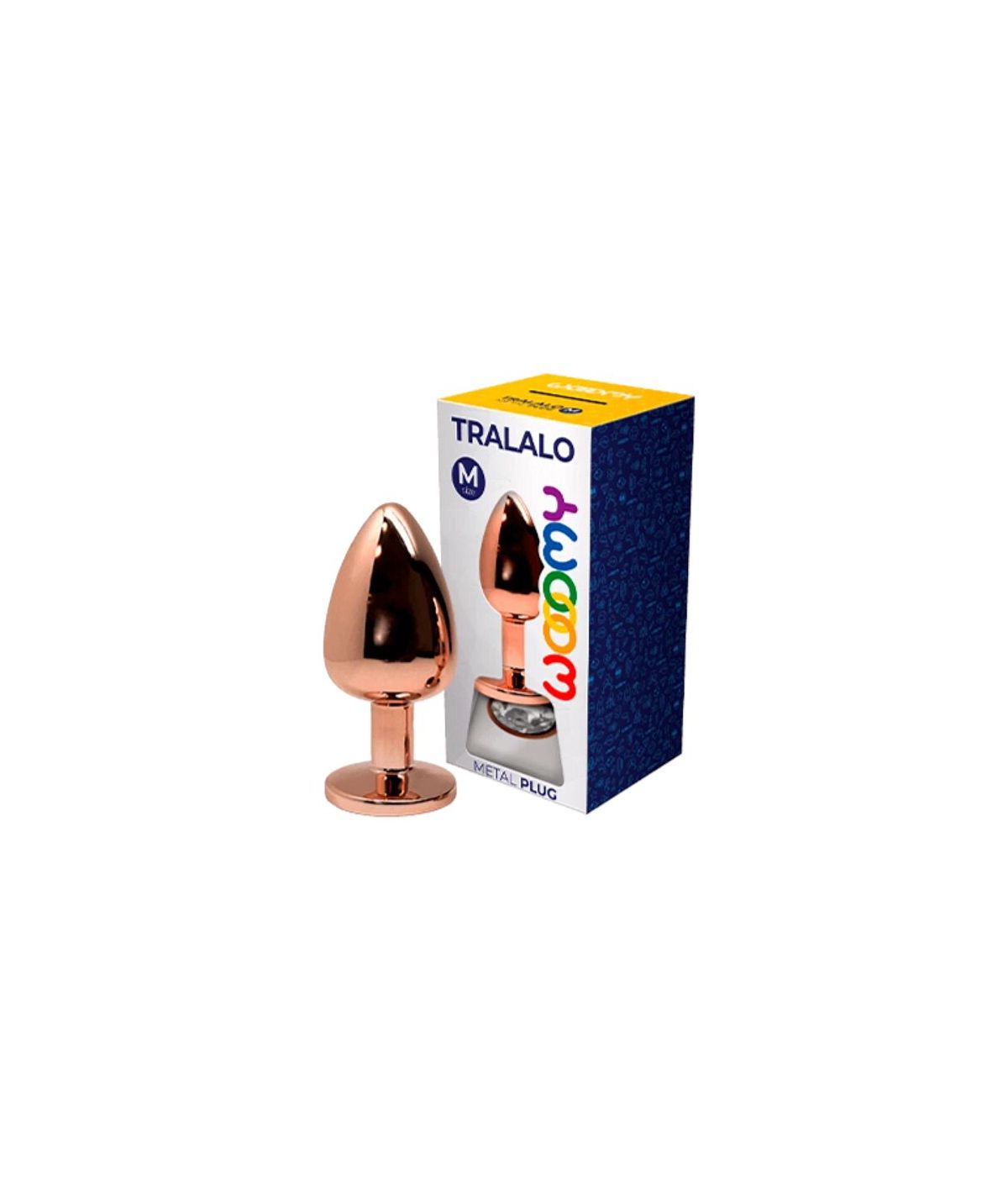 El Plug Anal Metálico Wooomy Tralalo es un accesorio íntimo diseñado para proporcionar placer con estilo y elegancia. Fabricado en metal de alta calidad, ofrece una superficie suave y un frescor característico que potencia la experiencia, contrastando con la temperatura del cuerpo. Su diseño incluye un tope con un brillante diamante, disponible en color magenta o blanco, añadiendo un toque sofisticado a tus momentos íntimos.