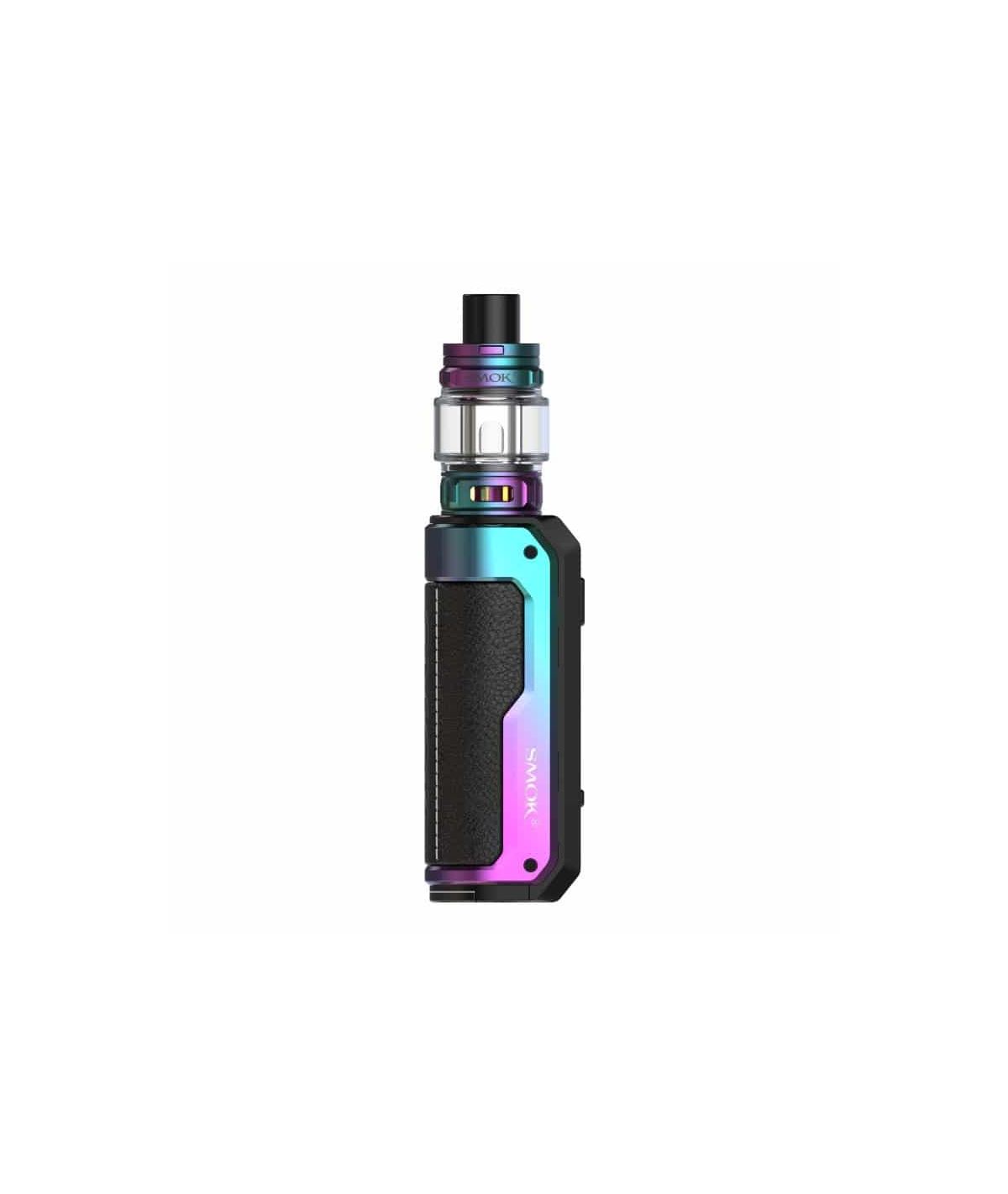 El Fortis Kit 7 Color de SMOK redefine la portabilidad y potencia con su capacidad de utilizar una sola batería 18650 para una salida de 80W o una batería 21700 para alcanzar hasta 100W, brindando así versatilidad en la experiencia de vapeo. Su diseño ergonómico incorpora acero inoxidable y paneles de cuero, lo que lo hace agradable al tacto y fácil de manejar. El tanque Smok TFV Mini V2, conocido por su capacidad de generar nubes densas y ricas en sabor, complementa al mod con una tapa de llenado superior ampliada que facilita la recarga de e-líquido.