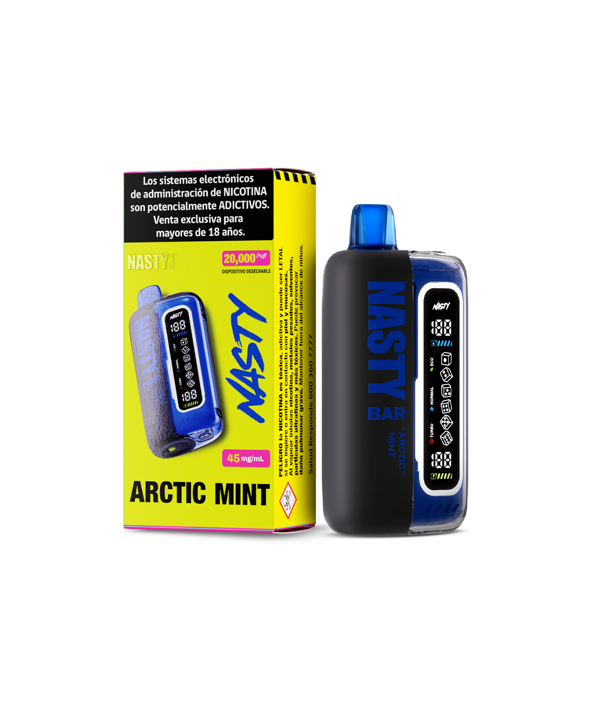 -Nasty Bar 20K Arctic Mint 45mg es un vape desechable de alta gama que entrega un sabor nítido y penetrante de menta helada. Su perfil está pensado para proporcionar una sensación fría inmediata y duradera, perfecta para quienes disfrutan de sabores frescos y directos. Cada calada proporciona una explosión de frescura ideal para el uso diario, especialmente en climas cálidos o para quienes buscan despejar el paladar.