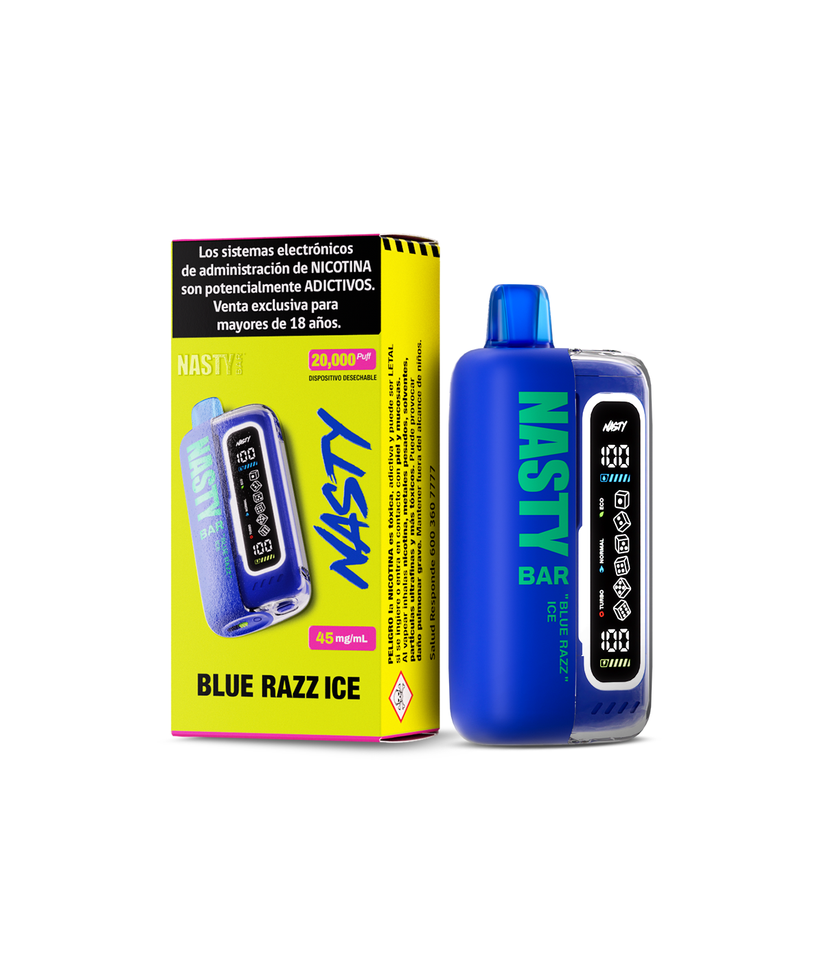 El Nasty Bar 20K Blue Razz Ice 45mg ofrece una mezcla afrutada con un perfil ácido y dulce, típica de la frambuesa azul, realzada por un efecto frío que refresca el paladar desde la primera calada. Es una opción ideal para vapeadores que disfrutan de sabores frutales con un acabado mentolado, perfecto para uso diario o para quienes desean un sabor estimulante y persistente.