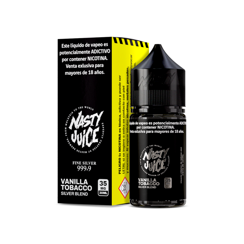 -Silver Blend Salt 35mg es un e-líquido de alta calidad pensado para los usuarios que prefieren sabores clásicos, sin renunciar a una experiencia sensorial moderna. El sabor del tabaco, profundo y persistente, se equilibra perfectamente con un toque de vainilla cremosa que suaviza cada calada sin opacar la esencia robusta del tabaco.